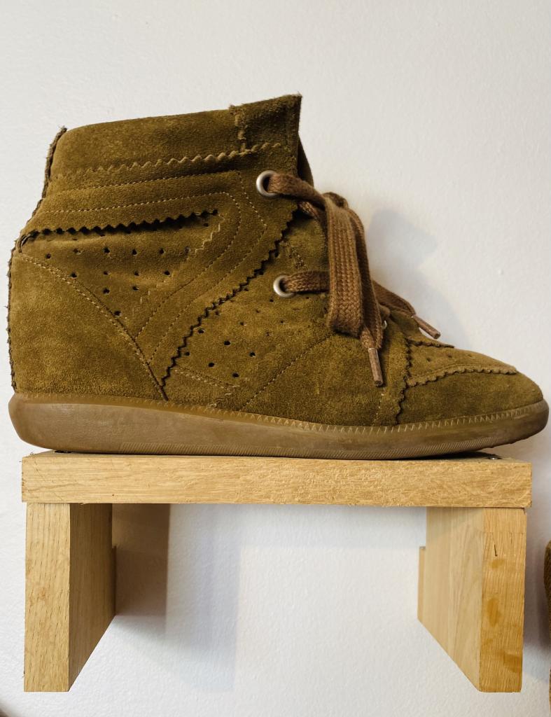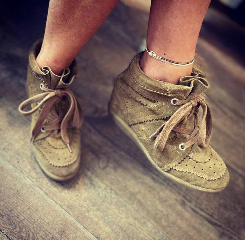 Basket « BOBBY » compensées à lacets en cuir de veau